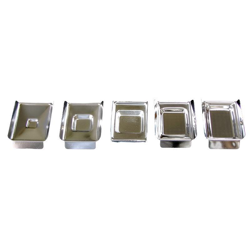 These moulds are made from polished stainless steel, offer optimal thermal conductivity, as well as easy paraffin block removal. All corners are precisely rounded for optimal paraffin ribboning. Like the plastic base moulds, these fit to histology cassettes. Overall height is 10mm, but depths for paraffin wax is 5mm. Measurements are derived from the face of the mould, minor batch variation occurs.
