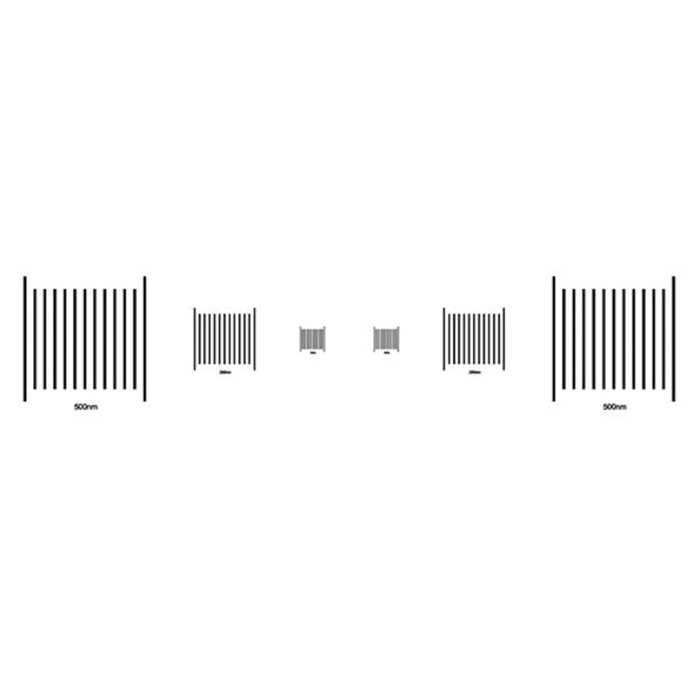 • 60nm chrome for larger features and 20nm chrome with 40nm gold for high-resolution features to give increased contrast