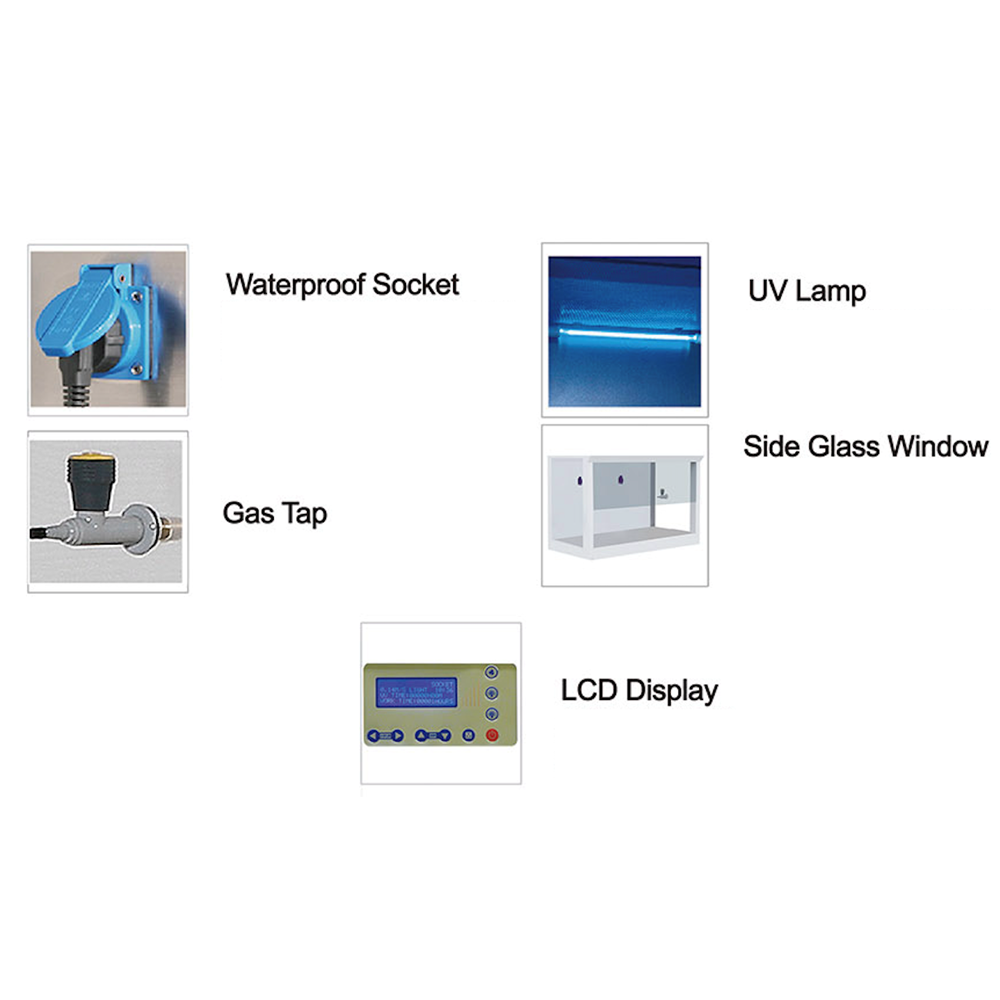 Universal caster with levelling feet, LED lamp, 2 x UV lamp, Base stand, Gas Tap, 2 x Waterproof socket