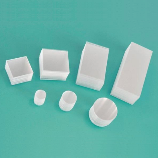Knittel, German-made microscope circular cover slips in various diameters and thicknesses are made of colourless borosilicate glass of hydrolytic class 1 (ISO 8255/1). Precision cutting without cords and blisters. Packed by 100 pieces per plastic box, and by packs of 1000. Very fine glass particles are used to powder the surfaces of stacked cover slips to prevent sticking.