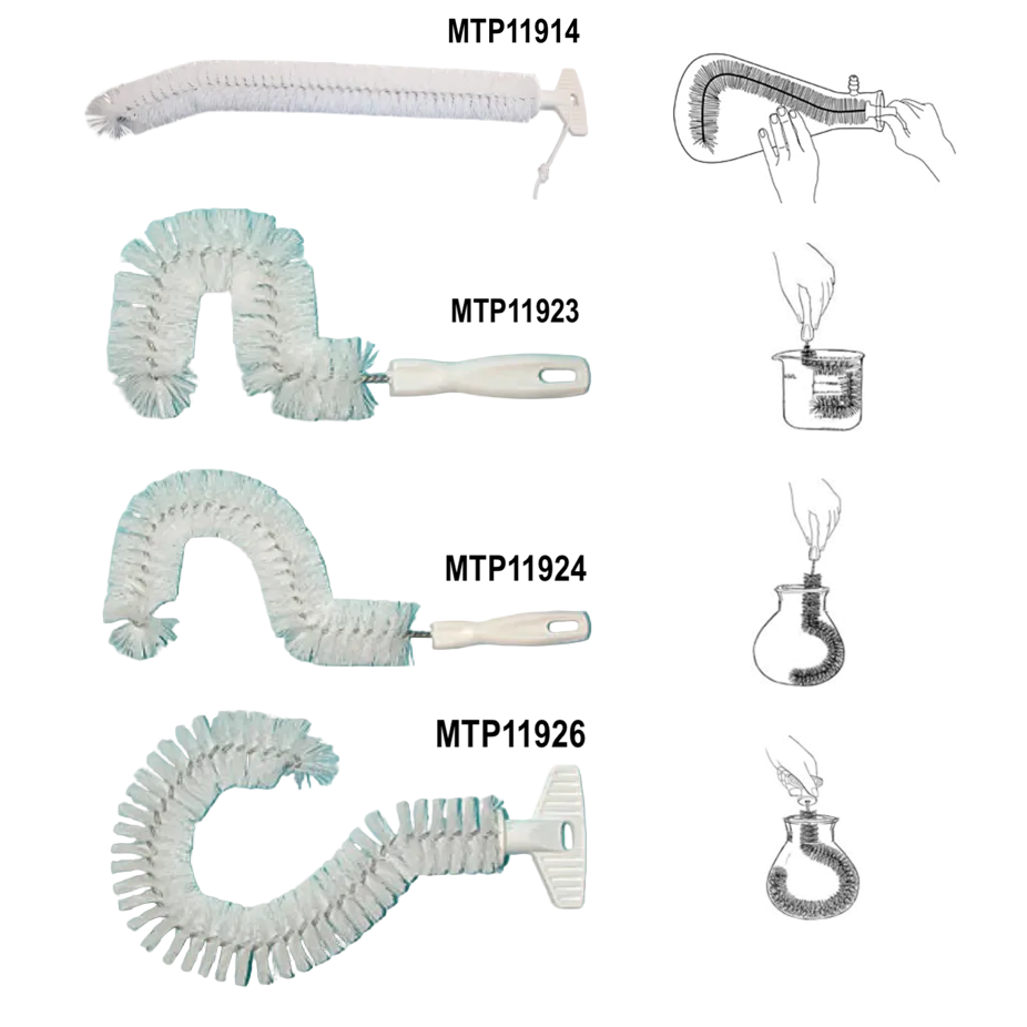 Flat bottom flask brushes, can be bent to conform to multiple shapes