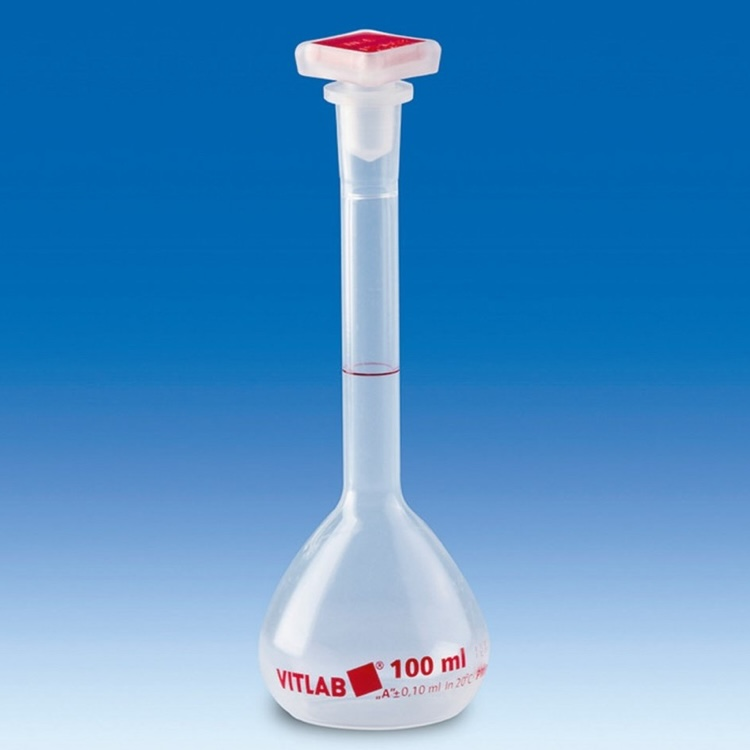 VITLAB volumetric flasks with PP NS stopper, PMP