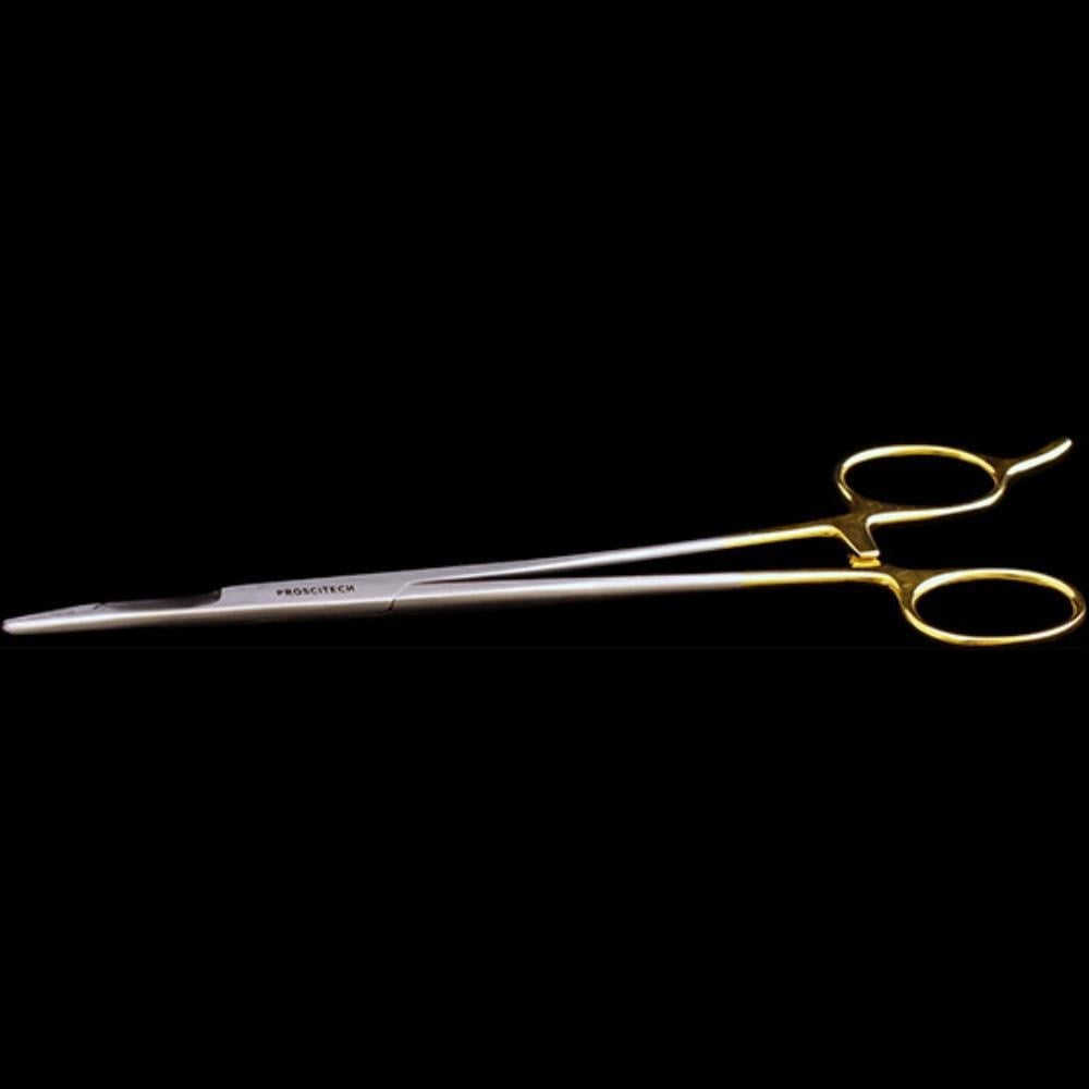 Tungsten carbide Olsen Hegar needle holder used to hold needles while suturing and have a groove for cutting the suture when complete.  They have a grip surface tip and ratchet clamp which locks the handles together.  These are straight 190mm in length
