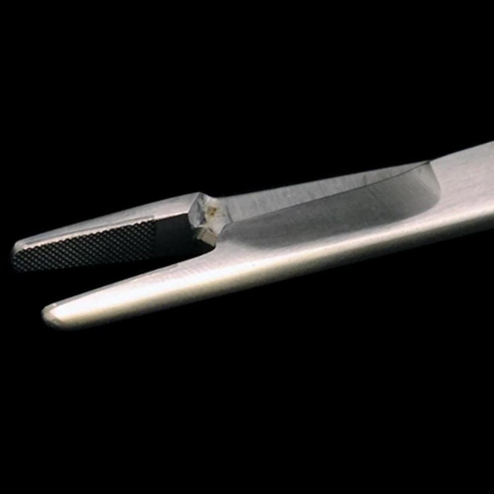 Tungsten carbide instruments are made of stainless steel with a layer of tungsten carbide bonded to the working surface. TC, next to diamond, is the hardest material, making it suitable for cutting and frequent grabbing of hard materials. TC instruments are very durable and can be used for frequent cutting and handling of hard substances without wear of the working surfaces. The handles are coated with a thin layer of gold to differentiate these from non-TC instruments.